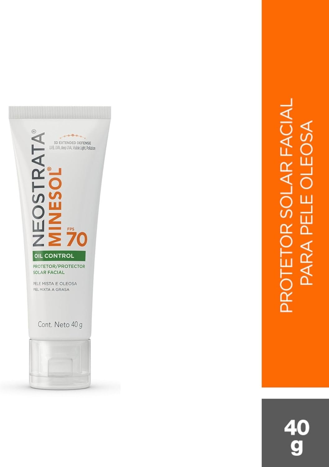 O NeoStrata Minesol Oil Control FPS 70 é um protetor solar facial desenvolvido para peles mistas a oleosas e/ou acneicas. Sua fórmula oferece alta proteção contra raios UVA, UVB, luz visível, poluição e radicais livres, graças à tecnologia 3D Extended Defense. Além disso, proporciona controle ativo da oleosidade por até 12 horas e atua na redução de linhas finas e rugas, devido à presença de Neoglucosamina.